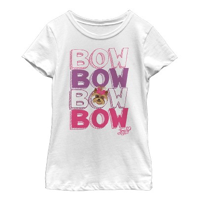 Get ready for some peace, love, and music with an officially licensed Nickelodeon Jojo Siwa Girls' Graphic T-Shirt! Your favorite stars Jojo and little BowBow are featured as cartoons alongside bows, cupcakes, and bright rainbow colors that read "Peace Love Music" on this awesome Jojo t-shirt that is perfect for Jojo fans everywhere!
