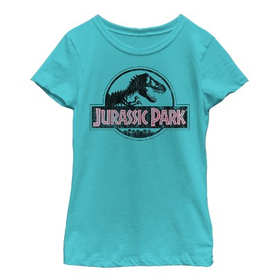 Girl's Jurassic Park Dino Skeleton Silhouette Logo T-Shirt - Tahiti Blue - X Small