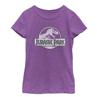 Girl's Jurassic Park Retro Postcard T-Shirt - Purple Berry - Medium