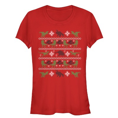 Girl's Jurassic Park T. Rex and Velociraptor T-Shirt - Red - Small