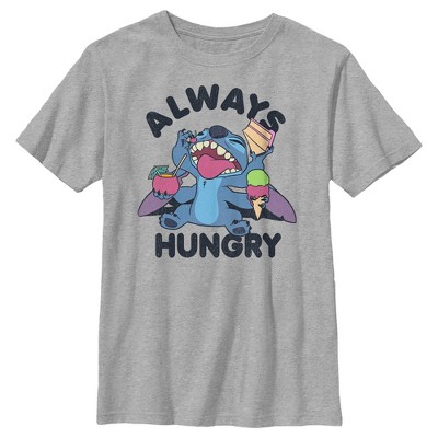 • Strut your stuff with this stylish new everyday Boys' T-Shirt that is perfect for every occasion! Featuring ice cream, cake, and coconut with your favorite characters like Stitch with the phrase "Always Hungry" printed in black.