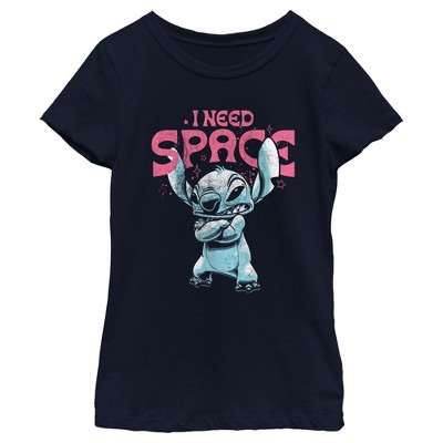 Girl's Lilo & Stitch Believe in Aliens Stitch T-Shirt - Navy Blue - X Small