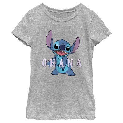 Ohana means family, and that means no tee gets left behind! Find the perfect style for your family with this Disney Lilo & Stitch Girls' Ohana Groovy Stitch Poster T-Shirt! This design features a cool graphic of Stitch showing his alien side with the movie title printed above in a retro 60s style with small figures of Lilo and Stitch below! Celebrate a certain alien, otherwise known as Experiment 626 in style this year with a new hilarious tee from the movie!