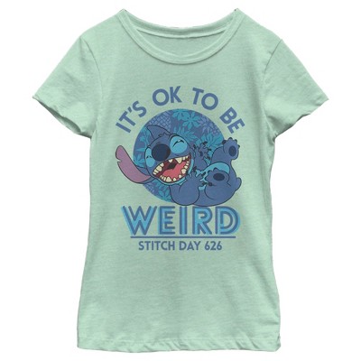 Ohana means family, and family means no tee gets left behind! Find the perfect style with this officially licensed Girls' Disney Lilo & Stitch Stay Weird Stitch Graphic T-Shirt! This design features the loving extraterrestrial sitting down and winking cutely at you with the inspiring phrase: "Stay Weird" printed in script white lettering below him. Celebrate a certain alien, otherwise known as Experiment 626 in style this year with new hilarious apparel from the movie!