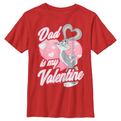 Whether it’s rabbit season or duck season, Looney Tunes t-shirts never go out of style. Make your outfit a little looney with this officially licensed Girls' Looney Tunes Tee featuring an adorable graphic of Bugs Bunny with pink hearts and the phrase "Mom is my Valentine" perfect for Valentine's Day!