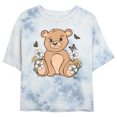 • Strut your stuff with this stylish new girls' crop t-shirt that is perfect for every occasion! Featuring an adorable teddy bear surrounded by flowers and butterflies across the front.