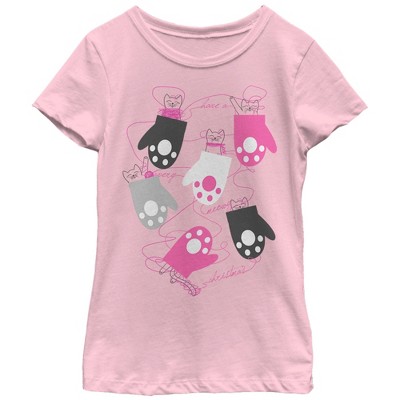 Girl's Lost Gods Christmas Cat Meowy T-Shirt - Light Pink - X Large