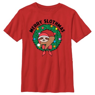 Girl's Lost Gods Christmas Wake Me Sloth T-Shirt - Red - X Large