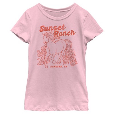 • Strut your stuff with this stylish new girls' t-shirt that is perfect for every occasion! Featuring a distressed design of a horse with flowers and the text: "Sunset Ranch Bandera, TX," across the front.