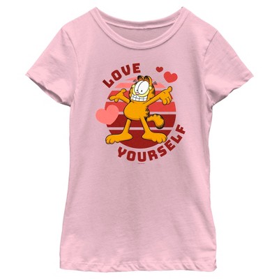 Girl's Lost Gods Halloween Full Moon Black Cat Heart T-Shirt - Light Pink - X Small