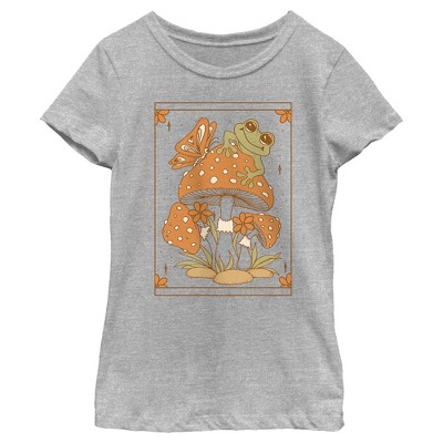 • Strut your stuff with this stylish new girls' t-shirt that is perfect for every occasion! Featuring a frog on top of a mushroom with flowers, a butterfly, and the text: "Take the time to do the things that make your soul happy," across the front.