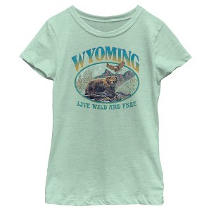 Girl's Lost Gods Live Wild And Free In Wyoming T-Shirt - Mint - X Small