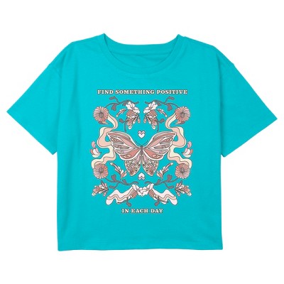 Girl's Lost Gods Nature Blooms Plants Boxy Graphic Graphic Cropped T-Shirt - Blue - X Small