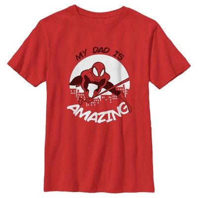 • Featuring a cool graphic of Spider-Man with the phrase "My Dad is Amazing" printed around him!