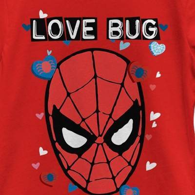 • Strut your stuff with this stylish new girls' cropped t-shirt that is perfect for your sweet valentine! Featuring your friendly neighborhood Spider-Man surrounded by hearts and the text: "Love Bug," above him.