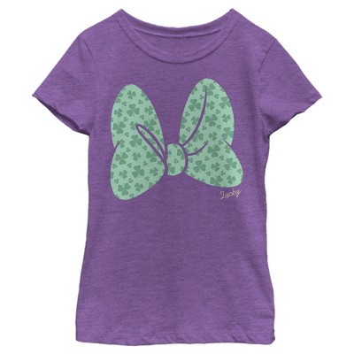 Girl's Mickey & Friends Bow Tie With Clovers T-Shirt