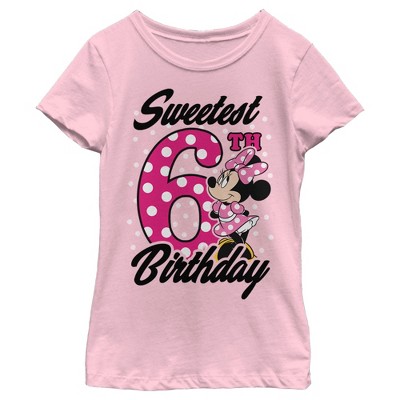 Girl's Mickey & Friends Hooray It's My 6th Birthday T-Shirt - Light Pink - X Large