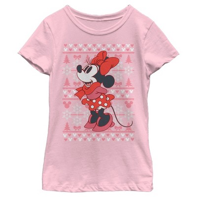 Girl's Mickey & Friends Retro Minnie Mouse Big Face T-Shirt - Light Pink - Large
