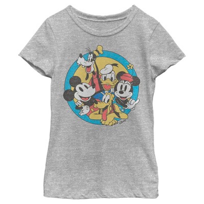 Girl's Mickey & Friends Retro Pluto and Mickey Mouse T-Shirt - Athletic Heather - X Small