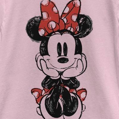 • Strut your stuff with this stylish new everyday Girls' T-Shirt that is perfect for every occasion! Featuring a distressed, sketched version of Minnie sitting with her hands under her chin.