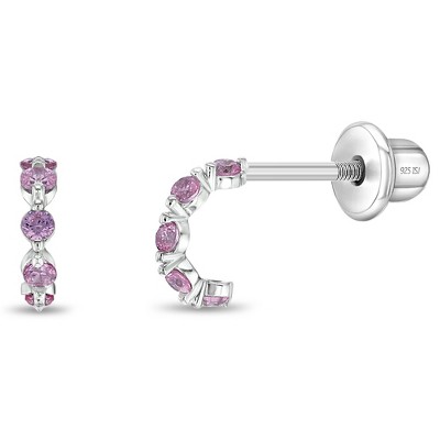 Girls' Multi CZ Hoop Sterling Silver Earrings - Pink CZ - In Season Jewelry