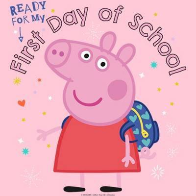 • Strut your stuff with this stylish new everyday Girls' T-Shirt that is perfect for every occasion! Featuring Peppa Pig carrying her backpack, surrounded by colorful stars, hearts, and sparkles while encircled by the text "Ready for My First Day of School."