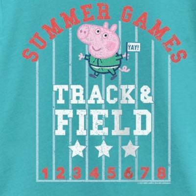 • Strut your stuff with this stylish new everyday Girls' T-Shirt that is perfect for every occasion! Featuring Peppa in sportswear and the text: "Summer Games Track & Field."