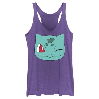 Girl's Pokemon Bulbasaur Wink Face T-Shirt - Purple Berry - X Large