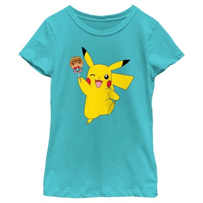 Girl's Pokemon Catch all the Birthday Fun T-Shirt - Tahiti Blue - Medium