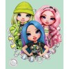If you have a passion for arts and fashion then be part of the #1 visual arts school by wearing this officially licensed Rainbow High Girls' Graphic Tee! This stylish t-shirt features Jade Hunter, Bella Parker, and Amaya Raine framed by a chain circle, with "RH" on a small badge. Show off all your favorite fashionistas these trendy t-shirts from the popular line of dolls today!