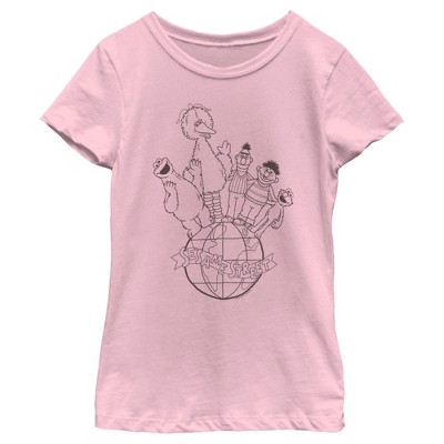 Girl's Sesame Street Crew Banner Portrait T-Shirt - Light Pink - Large