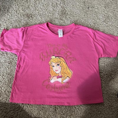 If you're planning on taking a long enchanted nap... then at least do it while wearing an adorable officially licensed Disney Sleeping Beauty This is my Aurora Costume Girls' Graphic Cropped T-Shirt! This tee is perfect for the last minute Halloween Princess Aurora costume idea that features her with the text: "This is my Aurora costume." Add some fairy magic to your closet, you'll love these Sleeping Beauty designs, perfect for Disney fans everywhere!