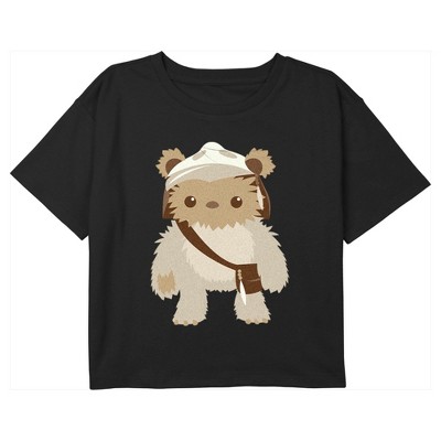 Girl's Star Wars Cartoon Ewok Spear Crop T-Shirt - Black - Large