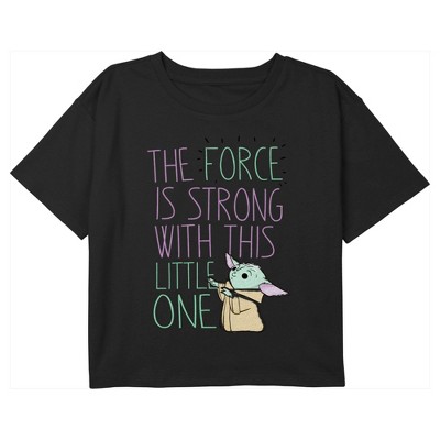 • Enjoy comfort and fashion at the same time with this unique girls' graphic cropped tee design from Star Wars: The Mandalorian.