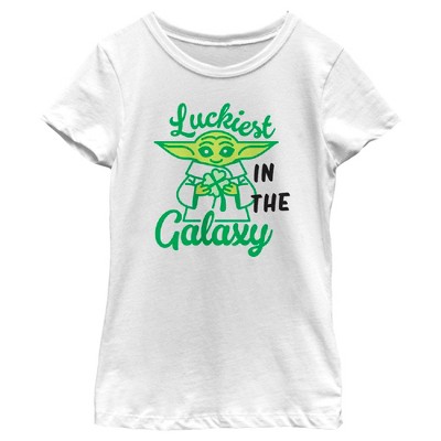Girl's Star Wars: The Mandalorian St. Patrick's Day Grogu May Luck be with You Retro T-Shirt - White - Large