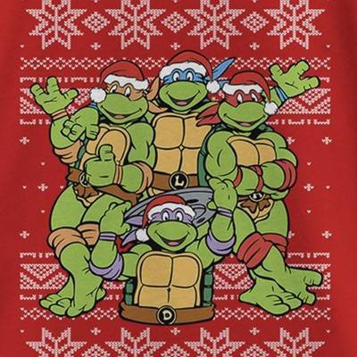 Girl's Teenage Mutant Ninja Turtles Ugly Christmas Sweater T-Shirt - Red - X Small