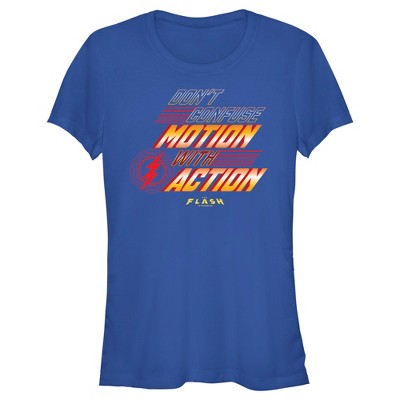 Running faster than the speed of light and breaking the barriers for time travel, the journey of Barry Allen has only begun and it's about to change the past, present, and future style of your wardrobe with this officially licensed DC comics feature film The Flash Don't Confuse Motion Girls' graphic T-Shirt featuring the iconic lightning bolt symbol alongside phrase: "Don't Confuse Motion with Action" in a bold graphic across the front. Grab one of these new tees today and show your love for the upcoming film of this amazing superhero!