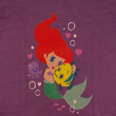Next time you head down under the sea with Ariel and her friends, be sure to be dressed your best with an officially licensed Disney The Little Mermaid Ariel Flounder Hug Girls' Purple Graphic T-Shirt! This tee features an adorable graphic of Ariel hugging flounder with a small octopus friend beside them. All of your favorite characters are here to help add some magic to your day with a fun The Little Mermaid design!