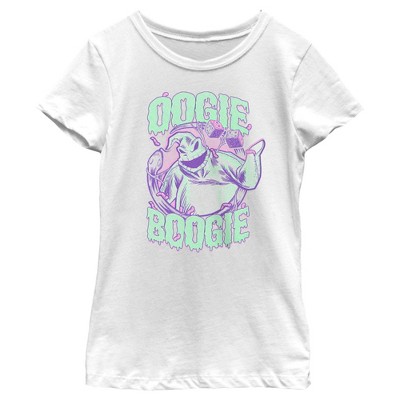 • Strut your stuff with this stylish new girls' t-shirt that is perfect for every occasion! Featuring the word "Nightmare" below all the Halloween Town residents including Jack, Zero, Sandy, Oogie Boogie, Black Cat, Barrel, Lock, Shock, Doctor Finkelstein, Giant Snake, Mayor, Santa Claus, and Vampire Teddy.