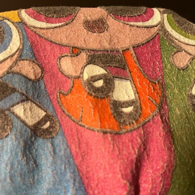 The whole shirt is see-through, even the lines around the appliqué for the power puff girls.