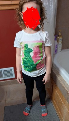 I gave this shirt 3 stars because the shirt itself is fine. The picture is printed nicely, it does go further down the shirt than what is shows in the image, but it's fine. The main reason I took stars away is because it runs very small. I originally ordered an XS for my 4 year old (turning 5), which the tag said "XS 4-5," but it was so small it barely fit my 2 year old. I returned and ordered a "M 7/8" and (see picture) just fit my very average sized almost 5 year old. It also was very long on her. I would have liked it even a little bit bigger because at this size it won't fit long. So if you order this shirt size up at least a few sizes!