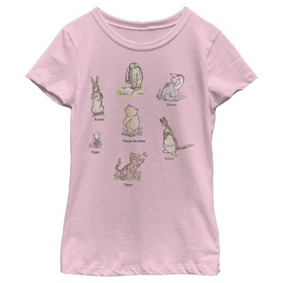 Girl's Winnie the Pooh Retro Character Panels T-Shirt - Light Pink - Large