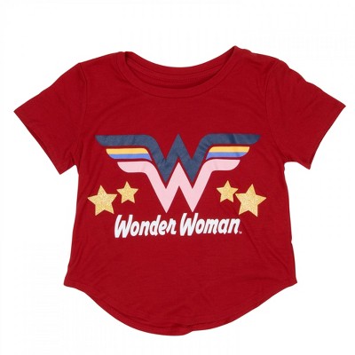 • Enjoy comfort and fashion at the same time with this unique girls' graphic tee design from Wonder Woman.