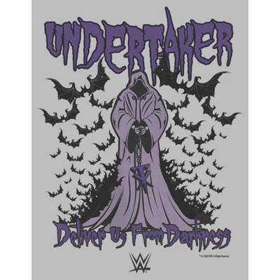 Show your love for all things wrestling with exciting new apparel for the whole family celebrating your favorite entertainers from the past and present from WWE! This Girls' WWE Undertaker Deliver Us From Darkness Graphic T-Shirt features a graphic of a grim reaper holding the undertaker logo, with bats and the phrase: "Undertaker Deliver Us from Darkness." Grab some WWE gear today and show up to your next live event in style!