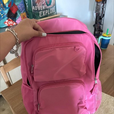 Get school-ready with the Girls' 18" Two Pocket Backpack from art class™ that's perfect for ages 3 to 12. Made from recycled polyester with a durable woven finish, this backpack features a roomy main compartment with a laptop sleeve that fits devices up to 10 inches. The dome-shaped structure offers two external bottle holders, a front zip pocket and adjustable straps for a comfy fit up to 33 inches. With a 15.67-liter capacity, it’s spacious enough for books, snacks and all the essentials, making every day a little more organized and a lot more fun.
