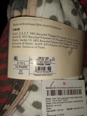 A: The socks are made of 65% recycled polyester, 33% polyester, and 2% spandex.