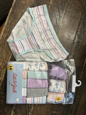 Soft, stretchy, and designed for all-day comfort, the Girls' 14pk 'Bows' Cotton Briefs Underwear from Cat & Jack™ in Purple is a great choice for easy movement. Made from lightweight cotton, these hipsters offer a breathable feel with a regular-rise fit that provides great coverage. The pull-on design ensures easy wear with a secure yet gentle fit, making these briefs great for everyday use.