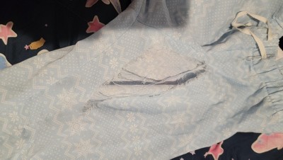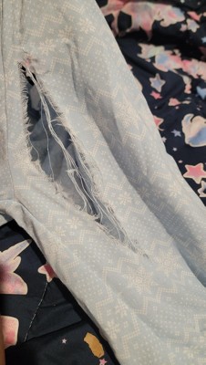 My daughter wasn't even wearing them for 5 minutes and the fabric on the pants ripped. she put them on and went to sit down to take christmas eve pictures and they ripped. we went up a size so they fit her loose.