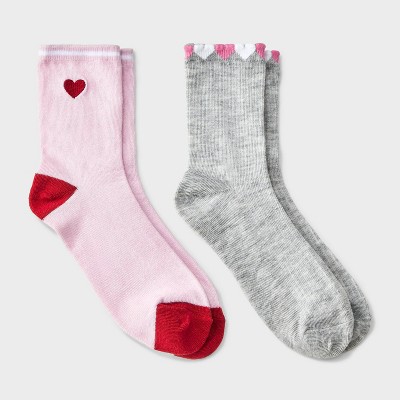 Girls' 2pk Embroidered Heart Crew Socks - art class™