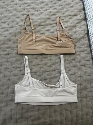 These Girls' 2pk Fits All Scoop Bras by Art Class are great in some ways, but not great in others. I like that the material is smooth so shirts don't cling, and they are double lined. The downside is how thin they are and that sizing is tough to match for a vey thin girl, too big around.